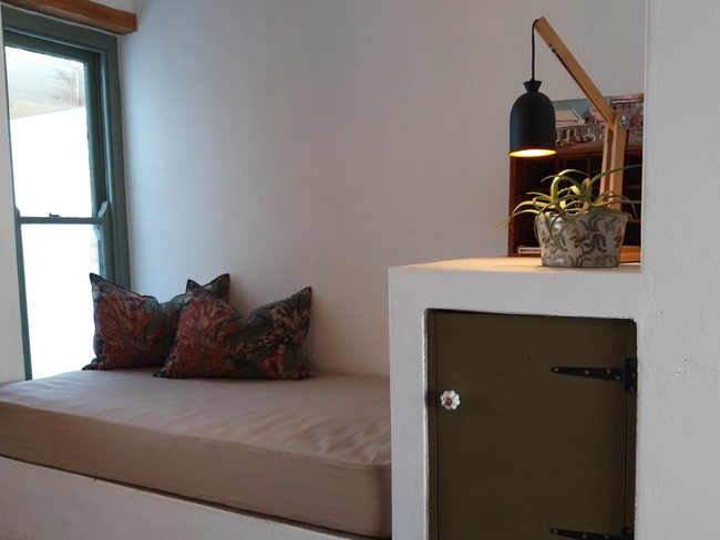 Olive Cottage at Ta Mala's is spacious and sleeps two adults and one child. The antique bedroom is furnished with a double bed and the bathroom is fitted with a shower, toilet and basin. There is an open plan living area with a day bed, TV and DStv, Wi-Fi and a fully equipped kitchen containing everything needed for your self catering stay. The cottage has air-conditioning for your comfort. The patio and secluded braai facility is worth mentioning.