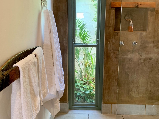 There is an open plan living area with a day bed, TV and DStv, Wi-Fi and a fully equipped kitchen containing everything needed for your self catering stay. The cottage has air-conditioning for your comfort.
