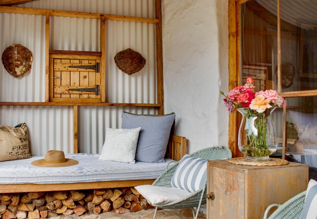 Fam Cottage can accommodate up to 2 guests and is furnished with a King-size bed or twin beds. The bathroom is fitted with a shower, toilet and basin and there is also a hot outdoor shower. Inside the cottage is spacious with a fireplace, small lounge and dining area. The kitchen is equipped with a gas oven and stove to allow the cottage to be as off-grid as much as possible (no microwave). The cottage is very private with its own dip pool, and a braai surrounded by a stone wall. There is also a Kolkol hot tub available for guests.