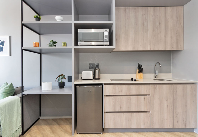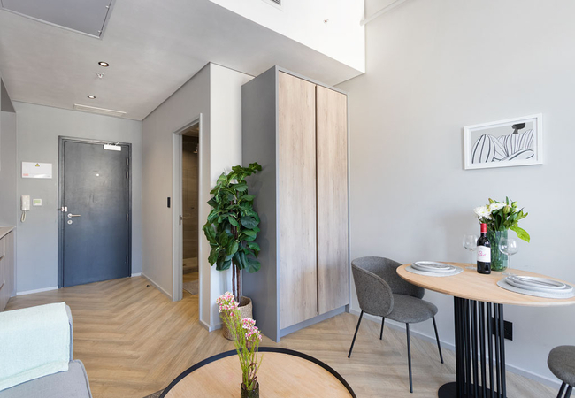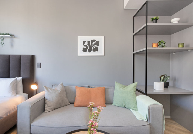 One Thibault 2003 is a beautiful studio apartment in the centre of Cape Town. This luxurious living area envelops you in a warm welcome the moment you enter. One Thibault 2003 is furnished with a comfortable Queen-size bed. The bathroom is fitted with a shower and washbasin. A charming kitchenette that has everything you could possibly need for cooking, including a fridge, microwave, and stove.