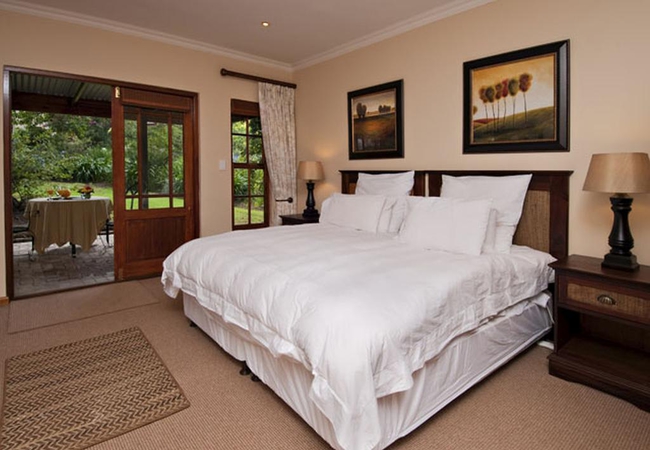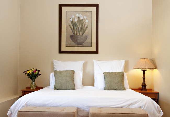 The twin rooms are furnished with a double bed. The en-suite bathrooms are equipped with a shower, hand basin and WC. These rooms are situated in our beautiful gardens with views of the spectacular Hottentots-Holland Mountains.