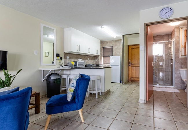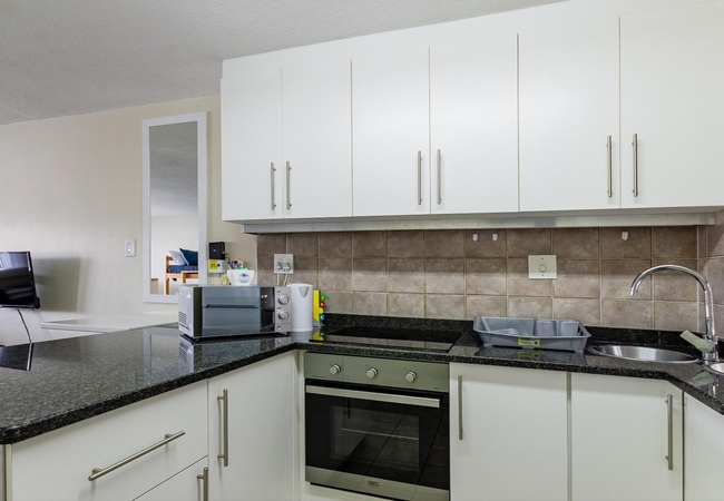 On the Bay 15 is an air conditioned, open plan holiday apartment in Richards Bay sleeping four guests. The bedroom is furnished with a double bed. There is a bunk bed that can accommodate two children in the living area. The bathroom is fitted with a shower, toilet and basin.