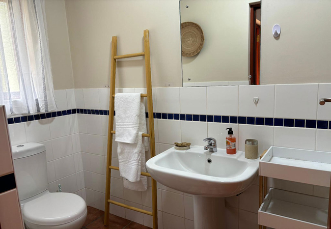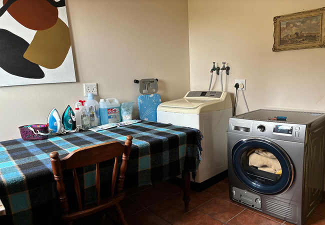 The spacious kitchen is fitted with a 4-plate electric stove, an electric oven, a full-size fridge and upright freezer, a microwave oven, electric kettle. An old Italian moka is available to those who appreciate a good coffee any time of the day. The kitchen also has a one-burner butane-powered stove in case of loadshedding.