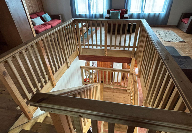 The Loft features four single beds with desks and chairs. There is a dedicated bathroom fitted with a shower. The room has a play area with a daybed, puzzle making table and chairs, reading area.