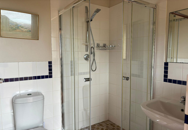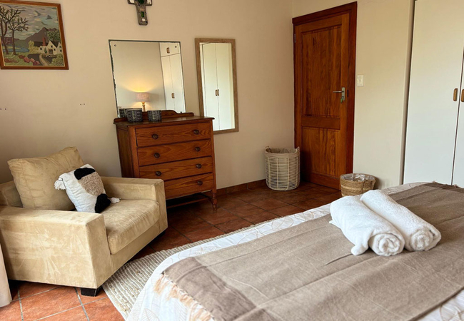 The Sunrise room is furnished with a King-size bed and has access to the adjacent bathroom fitted with a bath, shower, toilet and basin. Trust that a 4 am wake up call is worth the effort to watch the sunrise from your bed!
