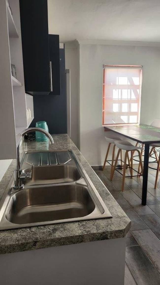 This stylish self-catering retreat spans two levels. The upper level is designed for relaxed coastal living, featuring a spacious gathering area that opens onto a balcony. Here, guests can unwind while enjoying a built-in braai, pizza oven, and a well-equipped mini kitchenette.