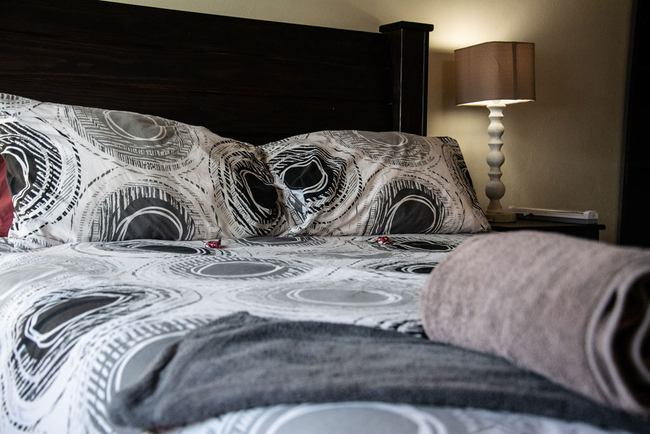 The large main bedroom offers a Queen-size bed, an en-suite bathroom with a bath and opens onto a small semi private patio where you can start your day with a cup of coffee while overlooking the majestic mountains.