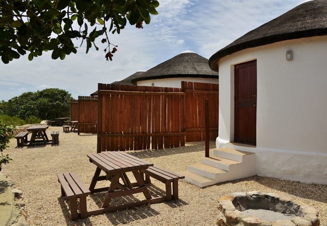 These five campsite rondawels are thatched cottages with two beds, outdoor shared showers and toilets. Perfect for guests looking for simple and affordable accommodation with a braai area, but no other kitchen facility.