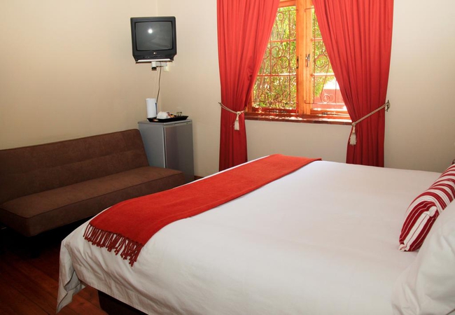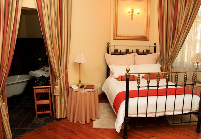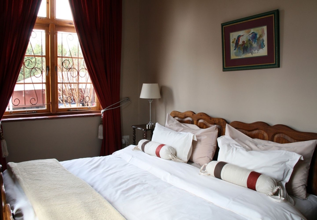 The King Room is furnished with a King-size bed. The en-suite bathroom is equipped with a shower. Facilities in the room include TV with bouquet selection of DStv channels, coffee and tea tray, bar fridge, fan and heater and Wi-fi. Our rooms are non-smoking.