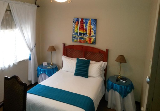 The Double Rooms are furnished with a comfortable double bed. The en-suite bathroom is equipped with a shower. Facilities in the room include TV with bouquet selection of DStv channels, coffee and tea tray, bar fridge, fan and heater and Wi-fi. Our rooms are non-smoking.