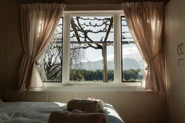 Situated on a wine and fruit farm, in the beautiful Breede River Valley, the serene and peaceful surroundings encourage guests to relax and unwind after a day of visiting the many attractions of the area. The dam is available for swimming, or paddle skiing. Bird watching is a popular pastime