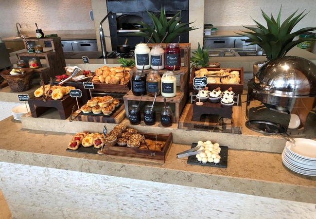 In the resort's village area, the Waterside Grill is open for dinner only. This restaurant features a large outdoor seating area, an interactive show kitchen and a raw bar. The Waterside Bar is adjacent to the restaurant and offers cosy seating arrangements, an outdoor terrace and a unique bar, with service available from both inside and out.