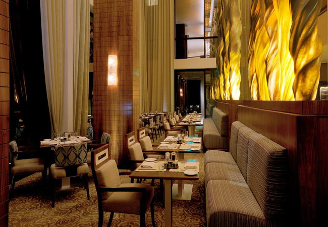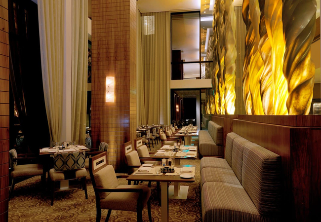 Cucina Restaurant, featuring picturesque floor-to-ceiling windows and a show kitchen, serves breakfast, lunch and dinner, and offers outdoor seating. The Wine Room, a private dining room accented by a large wine wall and a fire-lit lounge, complements Cucina's elegant ambience.