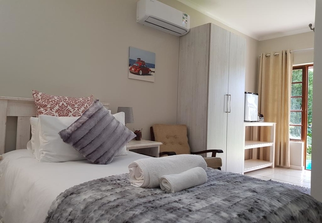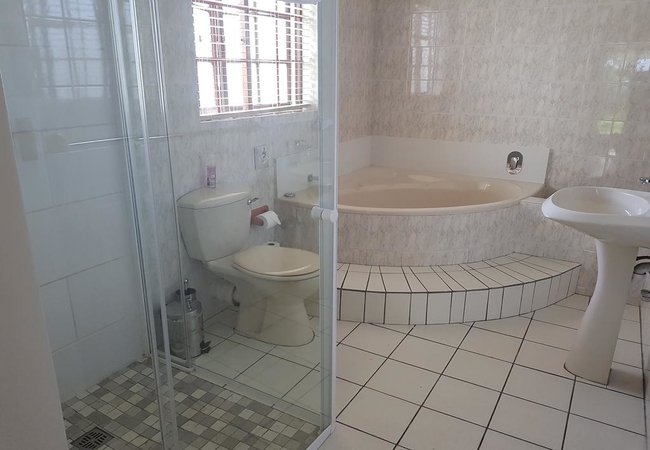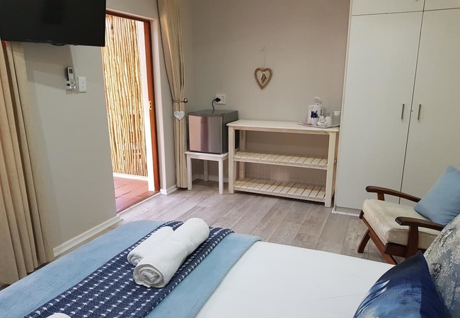 Double bed with en-suite bathroom (shower only) Breakfast included. The room equipped with Wi-Fi, safe, air-conditioning, Flat screen TV, DSTV. Private bathroom, coffee/tea station.