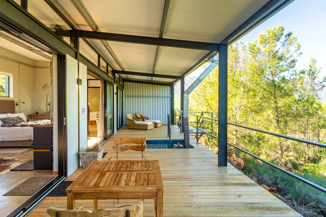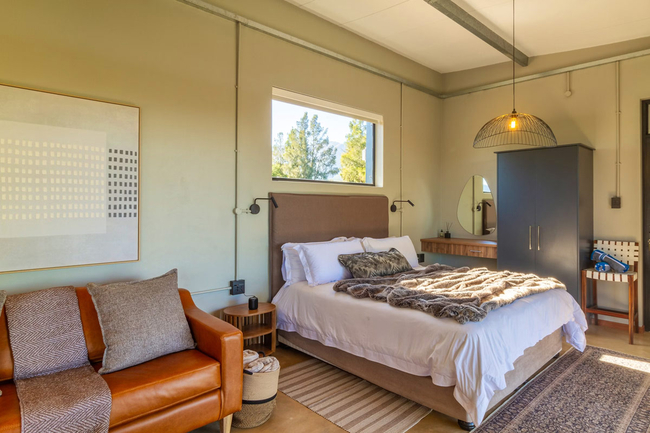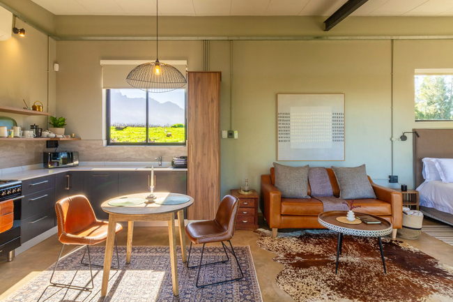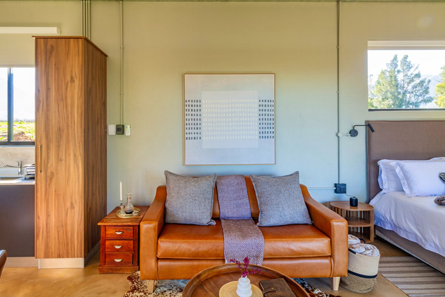 Bergsicht Cottages Outpost Four offers a refined self-catering experience on a working fruit farm, situated just 8 kilometres from the historic town of Tulbagh, known for its Cape Dutch architecture and old-world charm. This modern and thoughtfully crafted pod combines contemporary design with the serene beauty of the surrounding countryside.