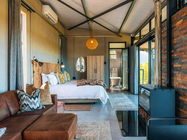 Bergsicht Outpost Cottage Two provides a peaceful countryside retreat designed especially for couples, quietly set on a working stone fruit farm just 7 kilometres from the heritage-rich town of Tulbagh. Surrounded by natural beauty and rural charm, this modern yet cosy pod offers the perfect place to slow down and unwind in comfort.