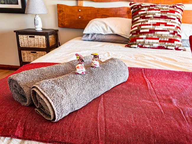 The Stone Cottage contains 2 bedrooms, accommodates five people. The main bedroom features a double bed with spacious cupboards and offers a beautiful view. The spacious second bedroom features 3 single beds, ideal for children. 2 Bathrooms with showers.