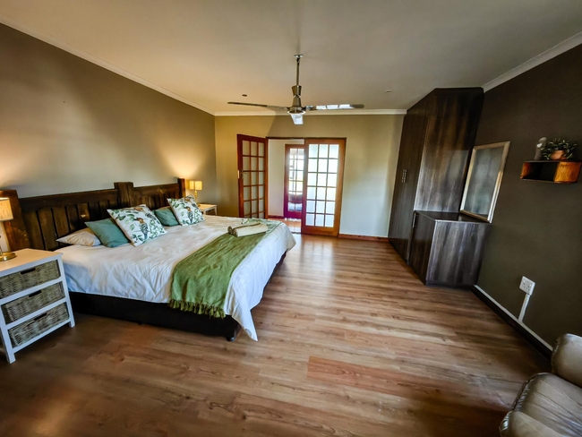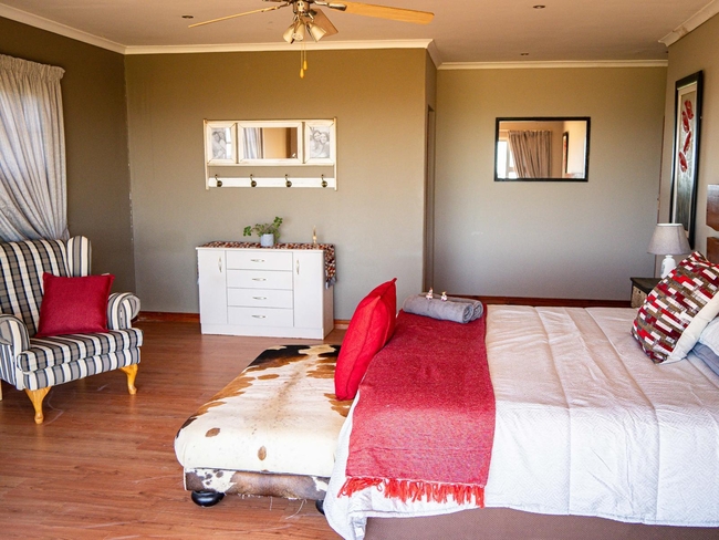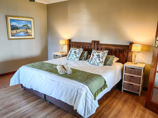 Luxurious 4 star Honeymoon Suite overlooking the Nature Reserve plains where animals roam freely. The unit is furnished with a queen size bed and a bathroom fitted with a shower, toilet and basin. The room is quipped with a coffee/tea station, mini bar fridge and private balcony. No self-catering facilities.
