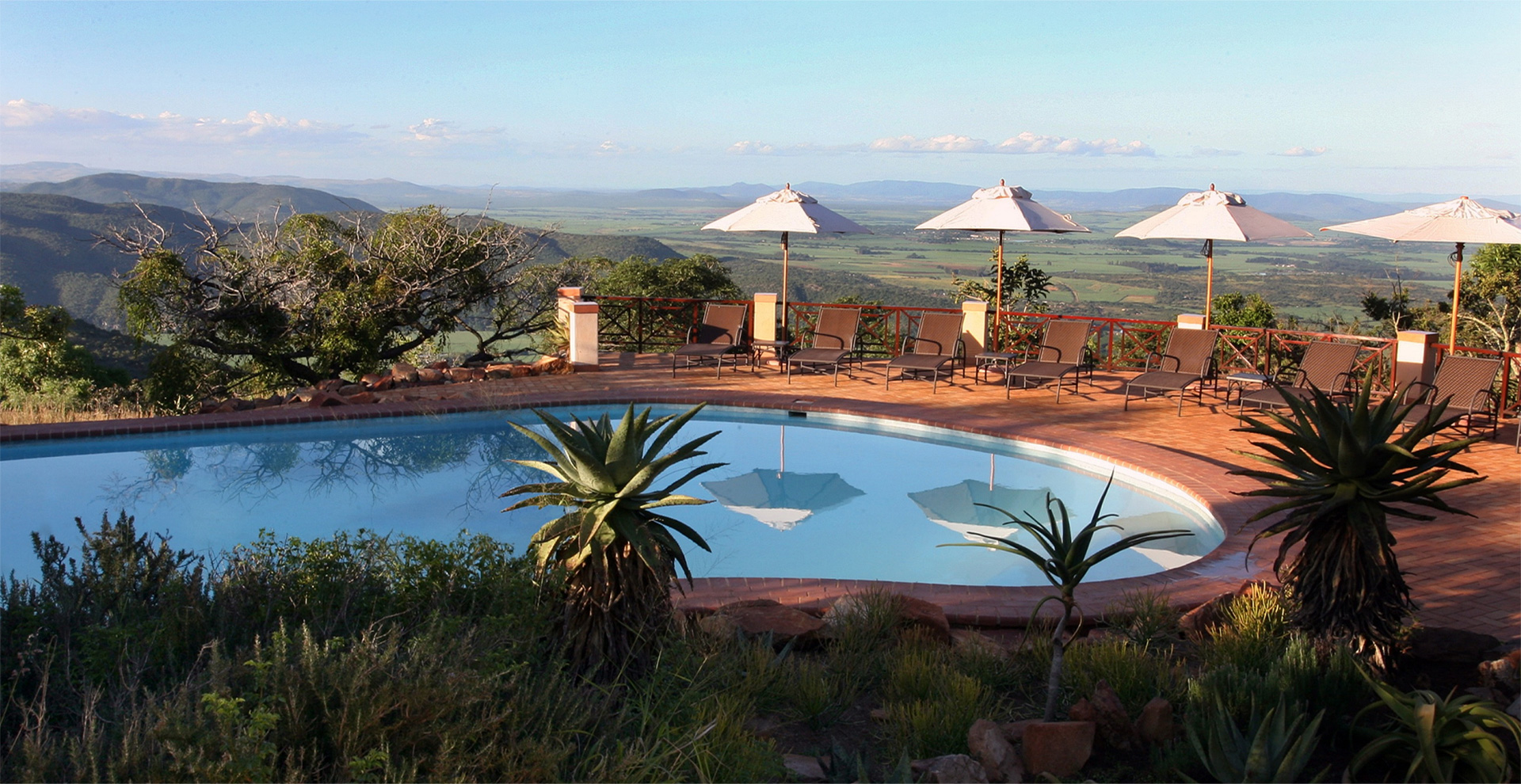 Majestically positioned in the spectacular mountainous region of northern Zululand in South Africa's KwaZulu Natal province, the hotel is some 30 km south-west of the small town Pongola and is situated in the middle of its own extensive and private Pakamisa Game Reserve. Superbly located on the high plateau of the Pakamisa Mountain, Pakamisa Private Game Reserve affords breathtaking views over the evergreen valley and plains of the Pongola River and the surrounding mountains.