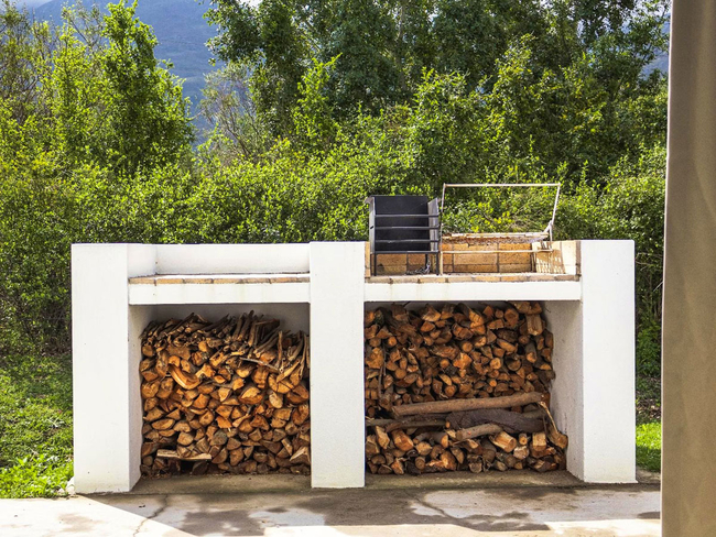 Guests benefit from complimentary Wi-Fi, secure on-site parking, and private braai facilities. A secluded, enclosed terrace invites guests to unwind with views of the surrounding mountains and the property's shared swimming pool.