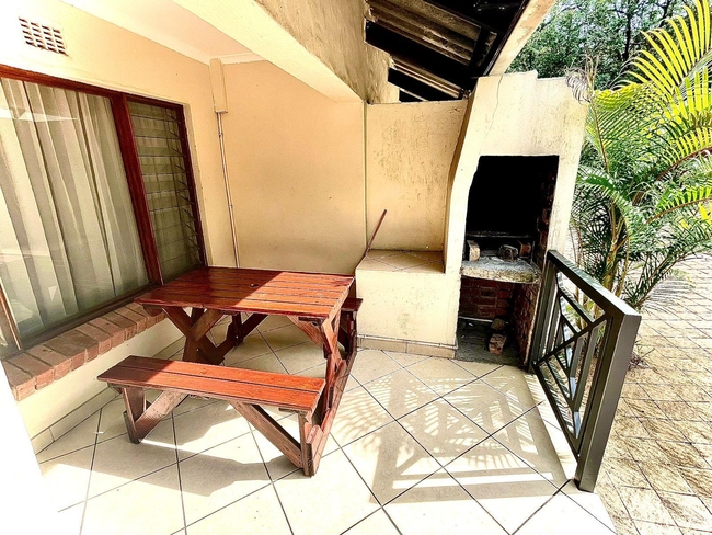 This spacious self-catering flat consists of 2 bedrooms and 1 bathroom. This flat has a fully equipped kitchen and an open-plan dining and a lounge area with a TV. This unit has dedicated parking and braai area.
