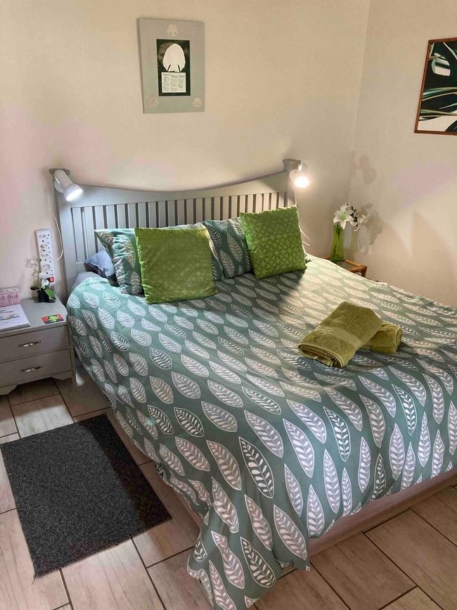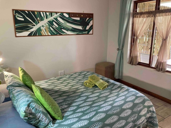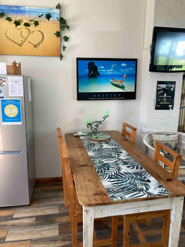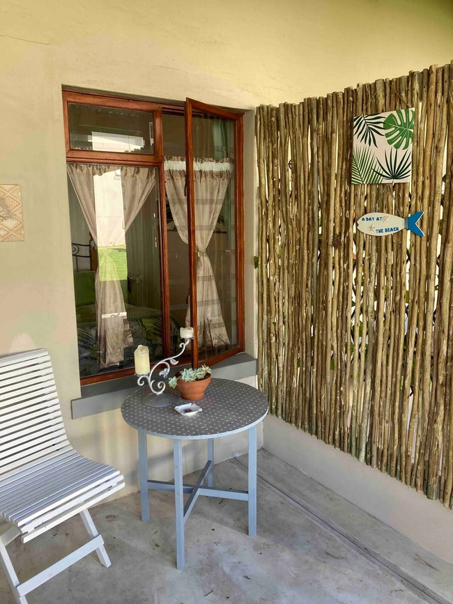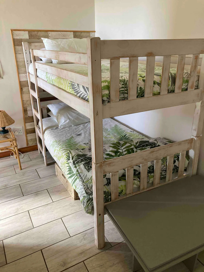 Pansy Shell is perfect for a group of four friends or a small family, having recently undergone renovations and been tastefully furnished throughout. The unit includes a private bedroom with a double bed and a second bedroom with a bunk bed, ideal for children. The en suite bathroom features a solar-heated shower and a toilet. The kitchenette is equipped with a fridge, kettle, microwave, and crockery, along with a complimentary coffee, tea, and sugar tray. Outside the room, the patio area offers braai facilities with a Weber braai. The garden patio, complete with a hammock, provides the perfect spot to soak up the sun. Guests have access to a communal kitchen, a relaxed TV lounge, and an outdoor entertainment area equipped for BBQs/Braais. The spacious garden offers a tranquil retreat with hammocks and the shade of a milkwood tree, ideal for birdwatching. Safe parking is available for both vehicles and boats. Kite surfers will appreciate the dedicated area for washing, drying, and storing their equipment. Recycling bins for bottles, tins, cardboard, and plastic are provided for your convenience. Smoking is not permitted in the rooms.