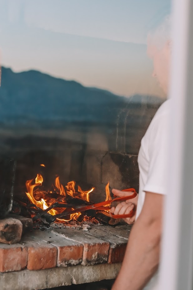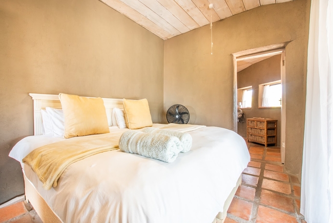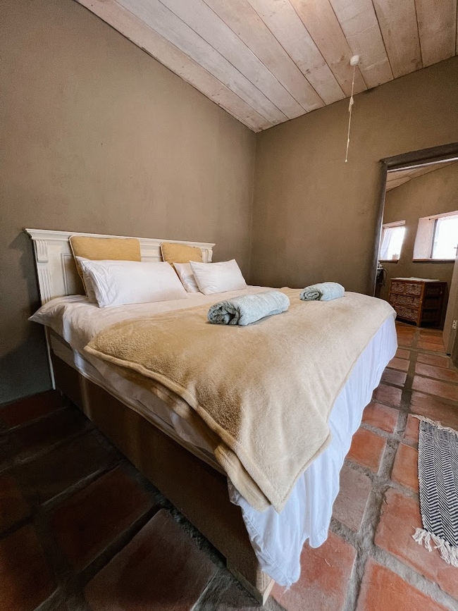 Parrastoel is a self catering Exclusive Use Holiday Home that consists of a spacious entertainment area, complete with a wood-burning hot tub with a valley facing deck outside. Inside are comfy leather couches and chairs, a dining table, a mobile four-plate gas stove cabinet, an indoor fireplace/braai and awe-inspiring vistas into forever all around. From there you step into a spacious fully equipped kitchen with a large countertop for prepping and another comfy couch which can fold out to sleep two people. On the one side of the kitchen, you can walk into the two en-suite bedrooms. One with a queen-sized bed, overlooking the hot tub, deck and valley beyond. The second bedroom with two single beds, which can be converted to one King-sized bed, looks out over the hill at the back. The spacious en-suite shower rooms both consist of a basin, toilet and a large-head shower. On the other side of the kitchen is an outside dining area with more endless sweeping views over the surrounding valleys, mountains and millions of miles of virgin oxygen blue skies. Hence the extreme star gazing experience at night. The wood fire hot tub is popular as a cool pool in the daytime and enjoyed to relax in at night or during the colder days. Each of our self-catering units are equipped with everything guests may need for a total break from the hustle and bustle of hectic lives. TV, Wi-Fi and all the contemporary technical amenities are EXCLUDED, for peace of mind and well-being.