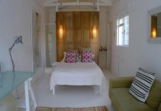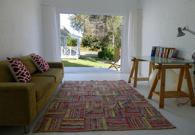 This Hermanus holiday home has four bedrooms and sleeps eight guests comfortably. The master bedroom has a Queen-size bed, lounge area and en-suite bathroom with a shower and bath. The second bedroom has a double bed. The third bedroom has twin beds and a cot. These two rooms share a bathroom with a shower and bath. There is a separate self-contained studio room with a Queen-size bed, couch and en-suite bathroom with a shower. All linen and towels supplied.