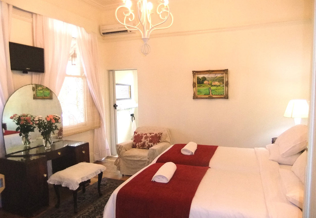 This warm and friendly home has four spacious double suites with high ceilings and large sash windows. The wooden varnished floors are complemented by the long white curtains and bamboo blinds allowing natural light to saturate the rooms. All suites are tastefully furnished to provide a spacious clean environment with luxurious beds linen and towels.