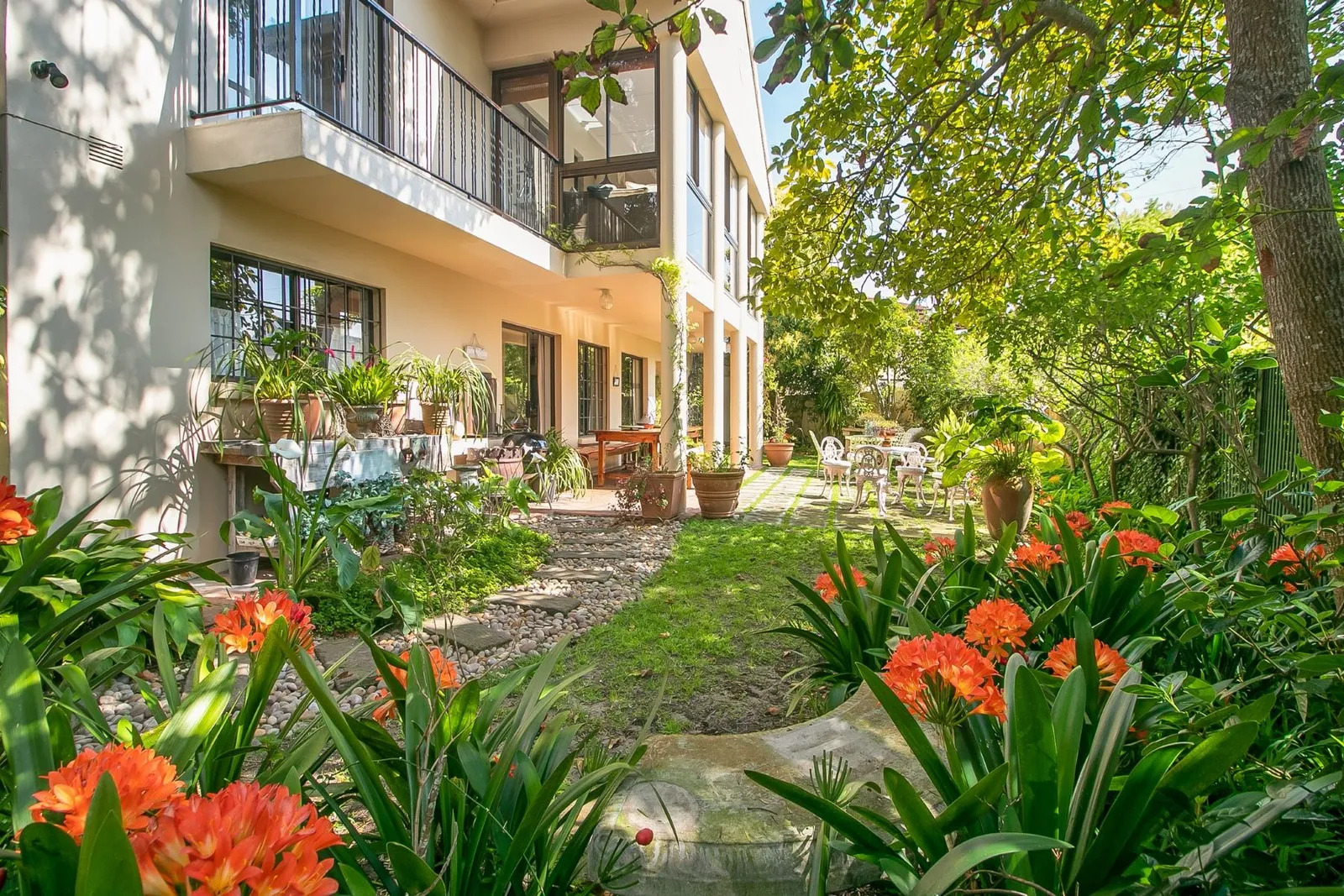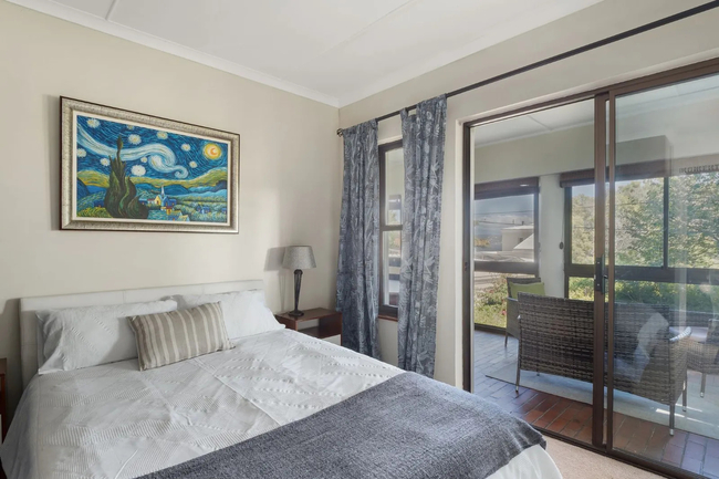 The kitchen includes a washing machine and all essential appliances, ensuring convenience for your stay. Step onto the balcony to admire picturesque garden views, and enjoy the seamless transition between indoor and outdoor living as the patio leads to a lush backyard. Whether you are hosting a barbecue with friends or simply relaxing with family, the outdoor braai area offers the perfect backdrop for creating cherished memories.