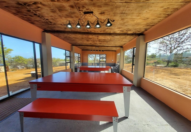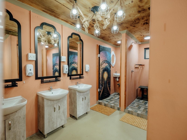Electricity is available, even during load shedding. There is also a spacious communal entertainment area that has two pool tables that can be converted to dining tables, additional bench seating, a built-in braai and washing basin.