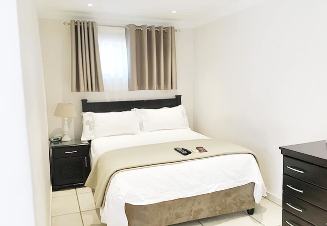 The Double Room furnished with a double bed with en-suite bathroom. Each room boasts a HD flat screen TV with full DStv, a telephone, free Wi-Fi, tea and coffee making facilities, a mini bar, air-conditioning and electric blankets. There is secure parking on site.