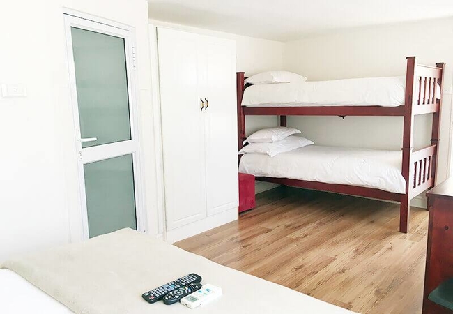 The Family Room has a double bed and a bunk bed for two children with en-suite bathroom. Each room boasts a HD flat screen TV with full DStv, a telephone, free Wi-Fi, tea and coffee making facilities, a mini bar, air-conditioning and electric blankets. There is secure parking on site.