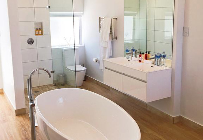 This room is furnished with a King-size bed and has an open-plan bathroom with a shower and a bath. The room is equipped with a mini-bar fridge, Nespresso machine, kettle and a selection of tea. The room offers distant views of Table Mountain and the ocean. There is also air-conditioning and a flat-screen TV with selected DStv and Netflix in the room. Stocked honesty bar fridge with a signature selection of local and imported alcoholic and non-alcoholic beverages.