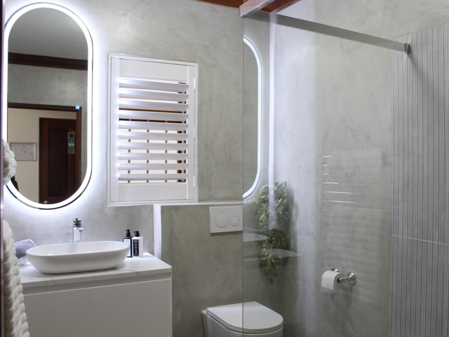 The Seabreeze Room is furnished with a Queen-size bed. The en-suite bathroom has a shower only. The room is equipped with Wi-Fi connection, tea and coffee making facilities, TV with Netflix as well as a covered patio with a boundary wall view.