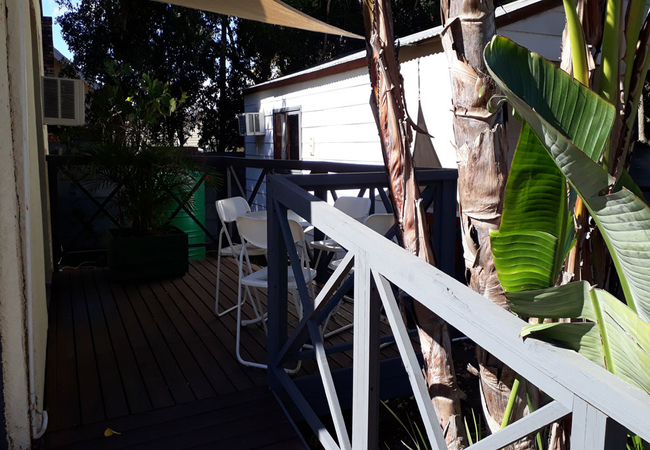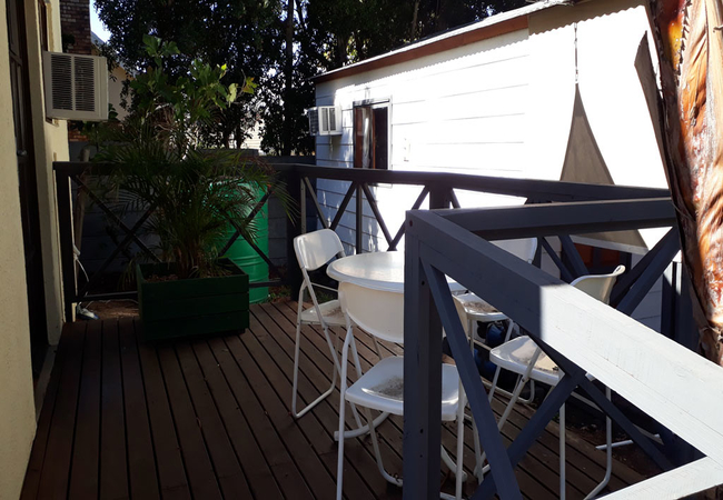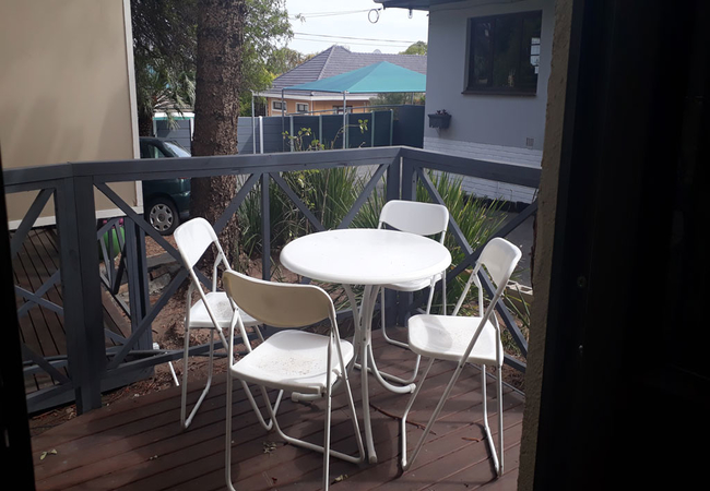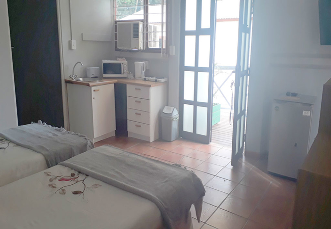 Delightful studio furnished with two twin beds and an en-suite bathroom fitted with a shower, basin and toilet. The studio has self catering facilities, seating area, television and air conditioning unit. Private patio overlooking the and garden. There is secure parking within the property and you will receive your own gate control with your studio key when you check in.