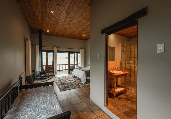 Penwarn Mthini Lodge is a self catering holiday home in Underberg sleeping eight adults and two children. There are three rooms furnished with King-size beds and another bedroom furnished with two three-quarter beds. All rooms have a fireplace with luxury en-suite bathrooms. Two bathrooms are fitted with a bath, shower, toilet and basin and one is fitted with a shower, toilet and basin.