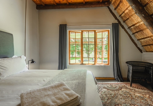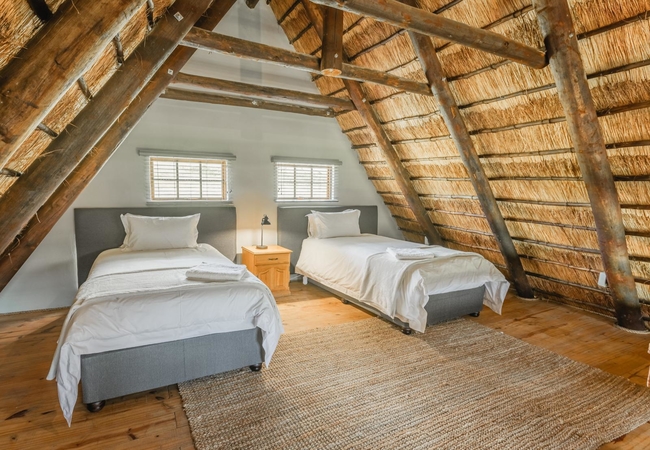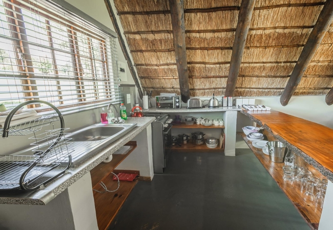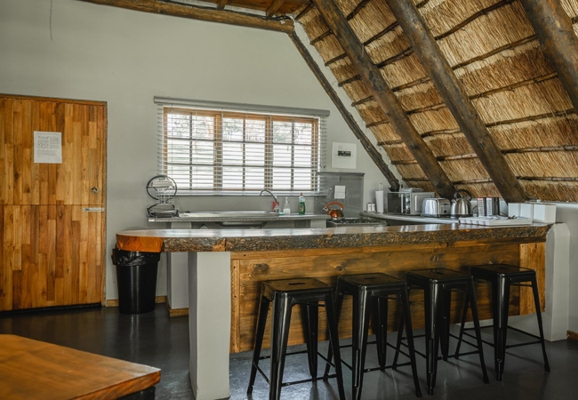Oribi Cottage is a thatched self catering holiday home sleeping five guests. There is a bedroom furnished with a Queen-size bed and a loft room furnished with two three-quarter beds and a single bed. The shared bathroom is fitted with a luxury shower, toilet and basin. Oribi Cottage has an open-plan kitchen and living area, with a comfy slouch couch to lie on and catch up on some reading or enjoy a nap in the afternoon. The kitchen is well equipped for your self catering stay and has an oven, gas hob, microwave, toaster, kettle, fridge/ freezer, crockery and cutlery etc. Watch the kids play on the nearby jungle gym from the comfort of your patio. Outside there is a picnic bench and braai facilities.