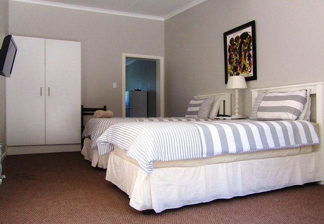 The cottage is fully equipped with a fridge, a small stove with an oven, a microwave and tea and coffee facilities for self-catering purposes. Beds can be double or single according to guest preference. The cottage has a kitchenette equipped with all you might need to cook a tasty meal or make a midnight snack, select DStv channels, fans, heaters, and mosquito machines. Our cottages are welcoming and, along with the large garden and braai facilities, offer you a home-from-home experience.