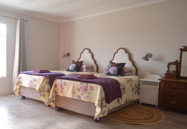 PersKussing is a two-bedroom farm cottage in Nieuwoudtville sleeping four guests. The bedrooms are furnished with two three-quarter beds. The rooms each have an en-suite bathroom fitted with a shower, toilet and basin.