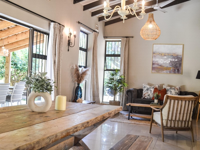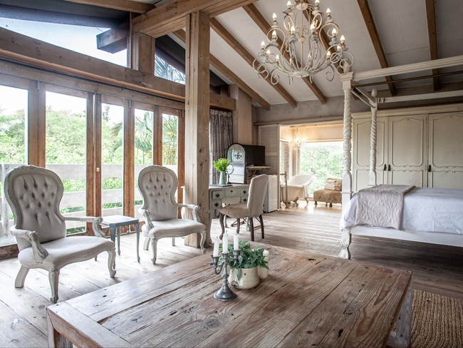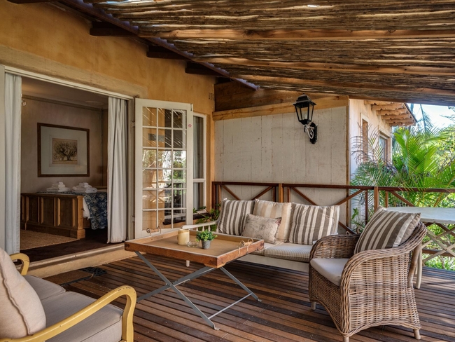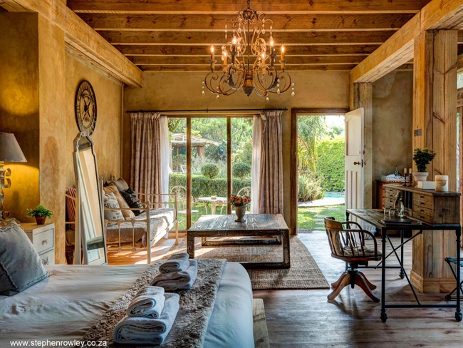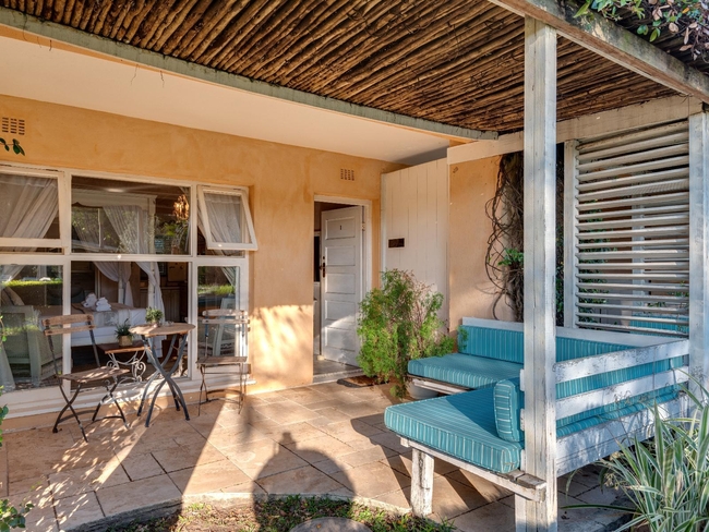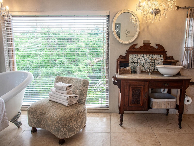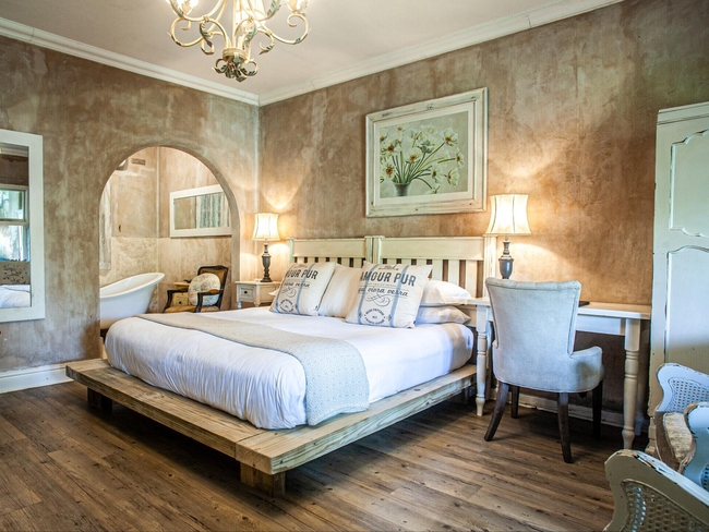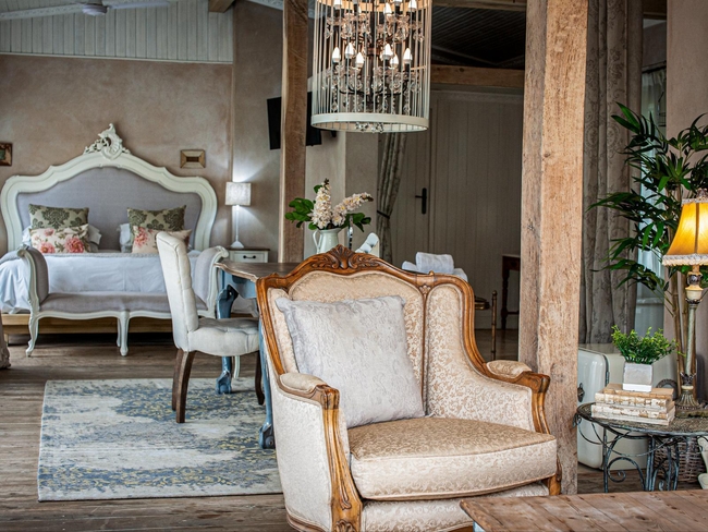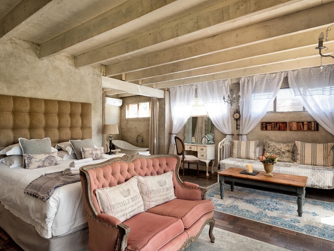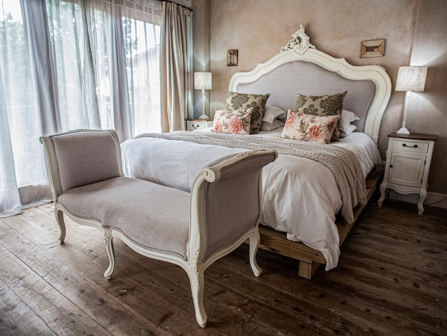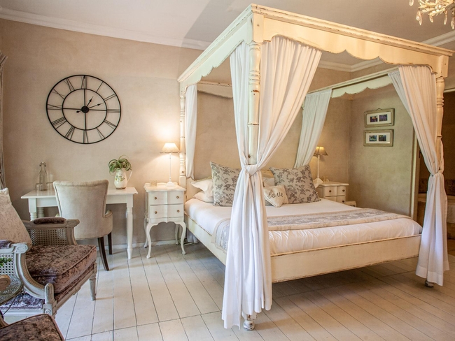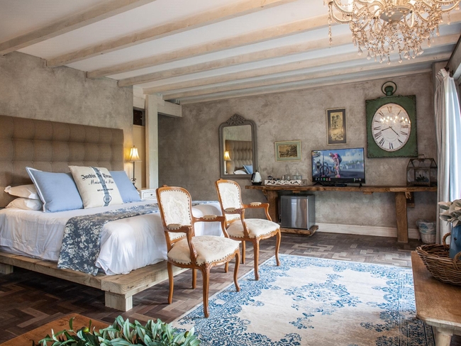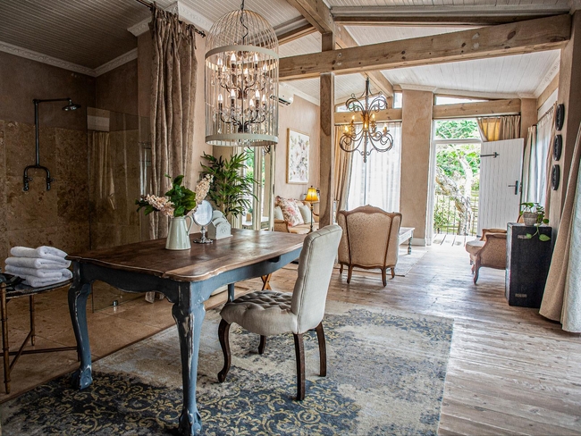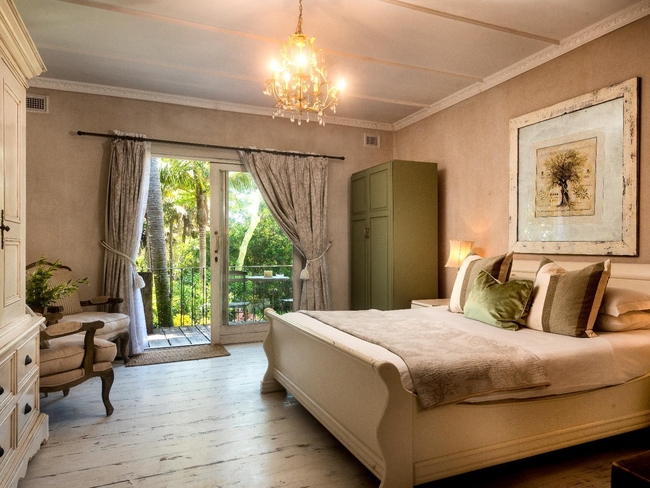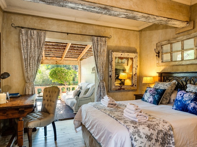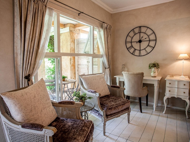 Authentic French Provence spacious suite. King bed and day bed lounge, private marble shower and open plan colonial bath. Air-conditioning, free Wi-Fi, TV with DSTV, fridge and hospitality tray, 100% cotton linen, beach towels, hairdryer, patio/balcony and private entrance.
