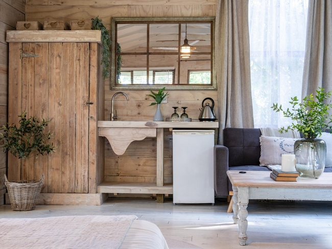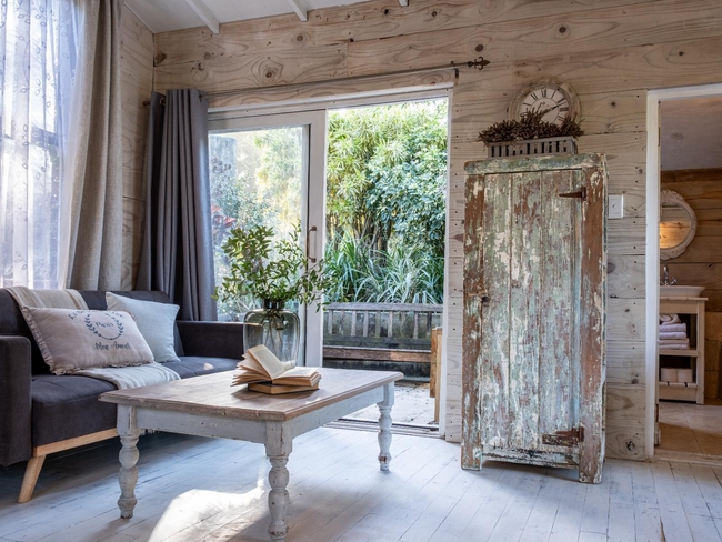 This charming and romantic rustic wooden garden cottage offers a cozy retreat, perfect for couples. The cottage features a comfortable queen-size bed, providing a restful space for a peaceful night's sleep. The bathroom is thoughtfully designed with both a bath and a shower, offering you the choice to relax in a soothing soak or enjoy a refreshing shower. The compact kitchenette is fully equipped, allowing you to prepare light meals and snacks with ease. Set in a serene garden, this cottage provides a tranquil and intimate setting for a memorable getaway.
