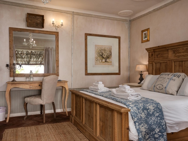 Authentic French Provence room. King/queen bed en-suite with bath and/or shower, kitchenette, air-con, free Wi-Fi, DSTV, fridge and hospitality tray, 100% Cotton linen, beach towels, luxurious toiletries, hairdryer, patio/balcony and private entrance.