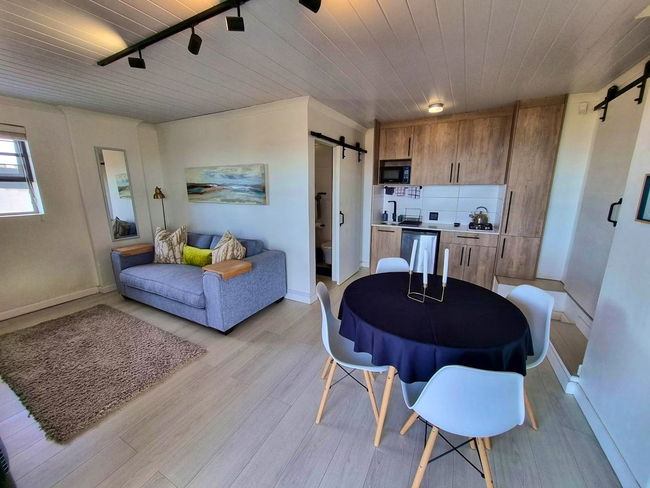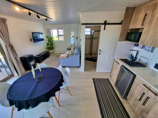Petra 2 is a charming two-bedroom unit located adjacent to the owner's house, with each bedroom featuring its own en-suite bathroom. The unit offers a fully equipped kitchen and an open-plan living area complete with a fireplace, creating a warm and inviting atmosphere. Guests can relax on the sea-view patio, enjoying the tranquil surroundings and scenic mountain and ocean vistas. The property is fully self-catering and includes Wi-Fi, DSTV, streaming services, a dining table, and TV. The kitchenette is equipped with a bar fridge, stove, microwave, toaster, and coffee and tea facilities. Outdoor amenities include a braai, dining area, and comfortable furniture. The unit is non-smoking and provides secure outdoor parking for convenience.