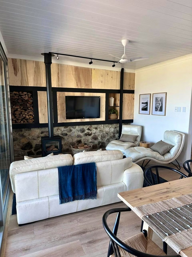 Petra 1 is a ground-floor apartment ideal for couples or small families, offering a double and single bed, private bathroom, kitchenette, and a wooden deck with sun loungers overlooking the sea. Petra 2 is a spacious two-bedroom unit with en-suite queen bedrooms, a cosy lounge with a fireplace and DStv, and a fully equipped kitchen.