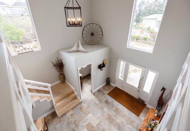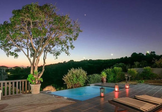 Pezula Forecastle Retreat is a self catering holiday home that is able to sleep up to eight guests in four bedrooms and four bathrooms. Two of the bedrooms have a Queen-size bed while the third bedroom features a King-size bed. The final bedroom makes use of two single beds. Some of the bedrooms have a ceiling fan and lead out onto the balcony / patio. Bed linen and bathroom towels are provided. Both the upstairs and downstairs living areas have comfortable furniture and a coffee table. The downstairs living area leads out onto the patio and is fitted with a fireplace where as the upstairs lounge has a wall-mounted TV with DStv and a fireplace. The fully equipped kitchen contains a stove, oven, toaster, microwave, tea / coffee making facilities, a breakfast nook and many other appliances. There is also a separate scullery. Guests are able to enjoy their meals at the eight seater dining table. Out on the patio there is a splash pool with sun loungers and views of the area. There are also BBQ / braai facilities and a small garden. Facilities include FREE Wi-Fi; TV with DStv Ceiling fan Indoor fireplace Swimming pool Braai facilities Secure off street parking