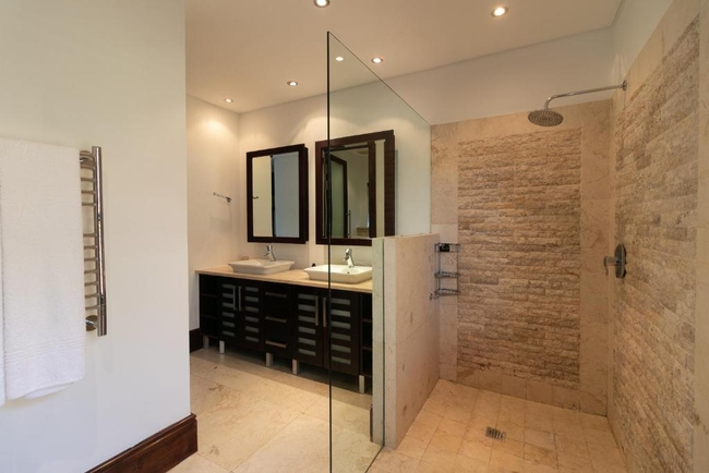 Accommodating up to eight guests, this spacious villa boasts four luxurious bedrooms, each paired with a private bathroom. The primary bedroom, featuring a king-size bed, offers an en-suite bathroom complete with both a bath and a shower for a touch of indulgence.