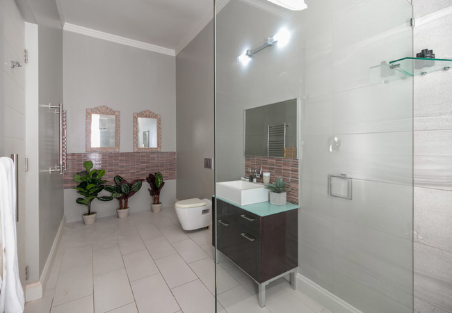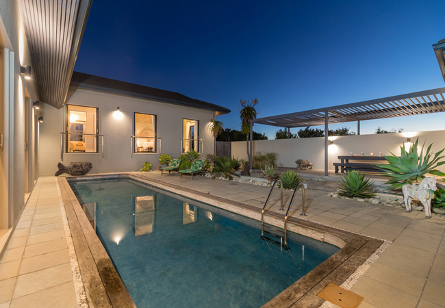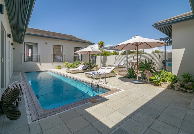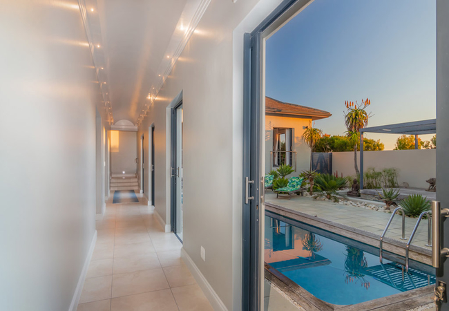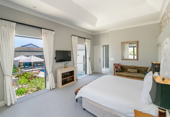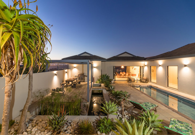 Pezula Heavenly Sunset is a self catering holiday villa sleeping eight guests in four double rooms each with King-size / Twin beds an en-suite bathroom with a shower. Each room leads onto a patio / deck area and has its own TV.
