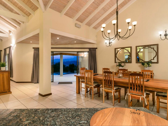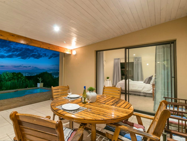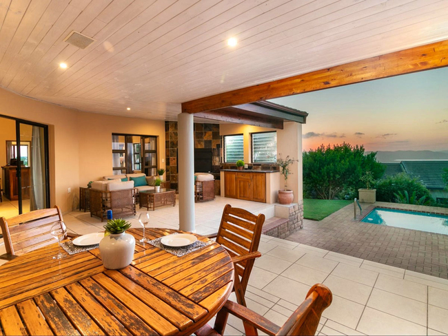Outdoor living is a highlight of the property. Guests can relax on the covered patio with outdoor seating and scenic views, enjoy meals in the fresh air, cool off in the swimming pool, or make use of the braai facilities for classic South African evenings. This exclusive holiday home provides a refined and peaceful base from which to explore the surrounding region.