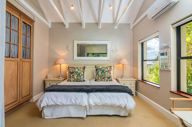 Pezula Wine and Sea in Knysna is a spacious holiday home offering four bedrooms and four bathrooms, designed for comfort and relaxation. The property features a private pool, a terrace, a fully equipped kitchen, and a garden, providing ample space for guests to unwind. The home is equipped with a wide range of amenities to ensure a convenient and enjoyable stay. Air conditioning, heating, a safe security system, a desk, a dining table, a sitting area, and a TV with DStv and streaming services are all provided. Guests can enjoy views of the ocean and garden, and the property is entirely non smoking. Wi Fi is available throughout. Practical features include a hairdryer, iron with ironing board, towels, and bathrooms fitted with both a separate tub and shower or shower only options. The kitchen is fully equipped with a refrigerator, stove, oven, microwave, toaster, dishwasher, coffee and tea facilities, and all necessary kitchen supplies. Outdoor spaces include a balcony, garden, outdoor dining area with furniture, and braai facilities, making it easy to enjoy meals or relax outside while taking in the surrounding views.